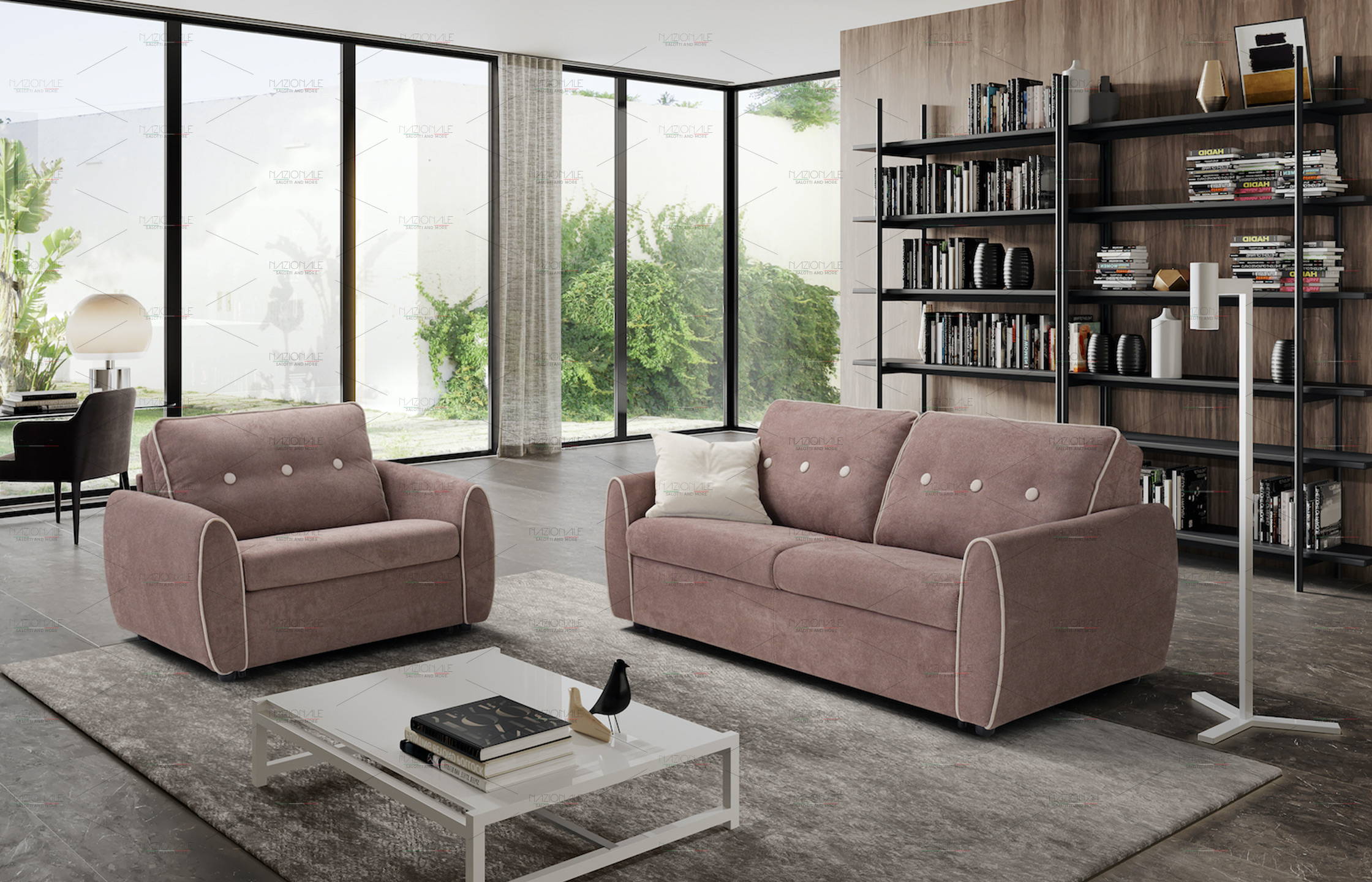 Incantevole composizione del modello Torino composta da un divano letto 3 posti ed una poltrona letto.