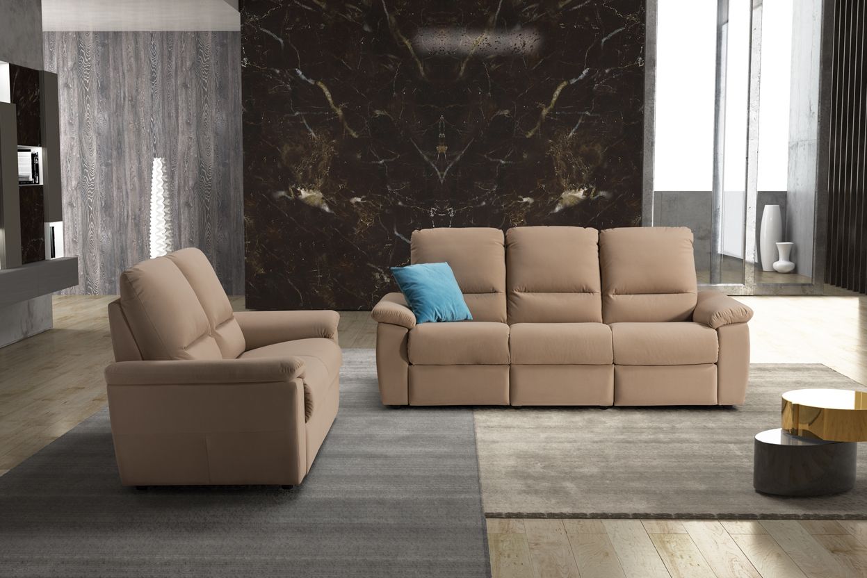 Comfort assoluto per questo Salotto Pantelleria, formato da un divano 3 posti e un divano 2 posti in coordinato tra loro. Linee morbide e stondate disegnano le forme di questo modello.