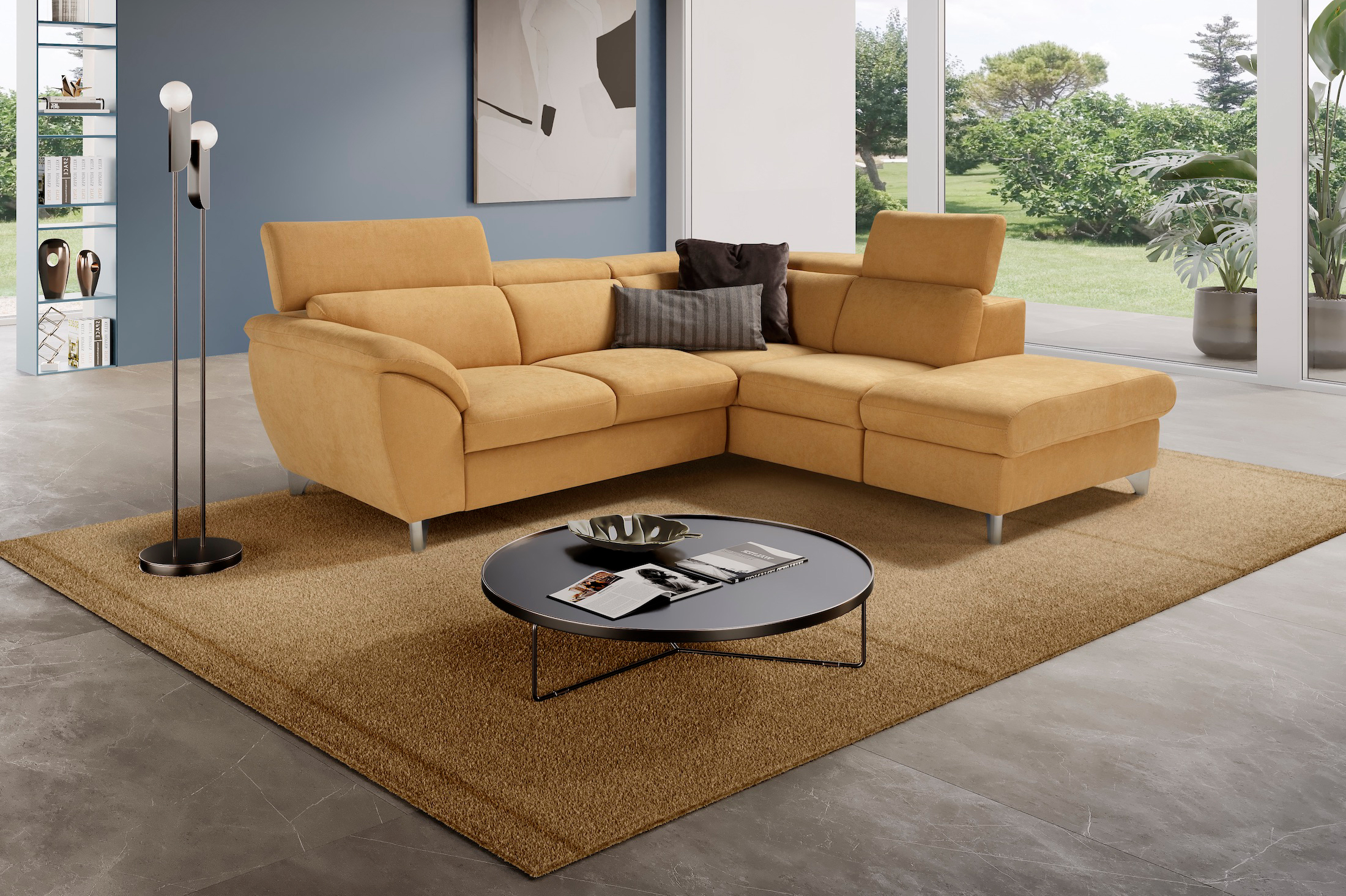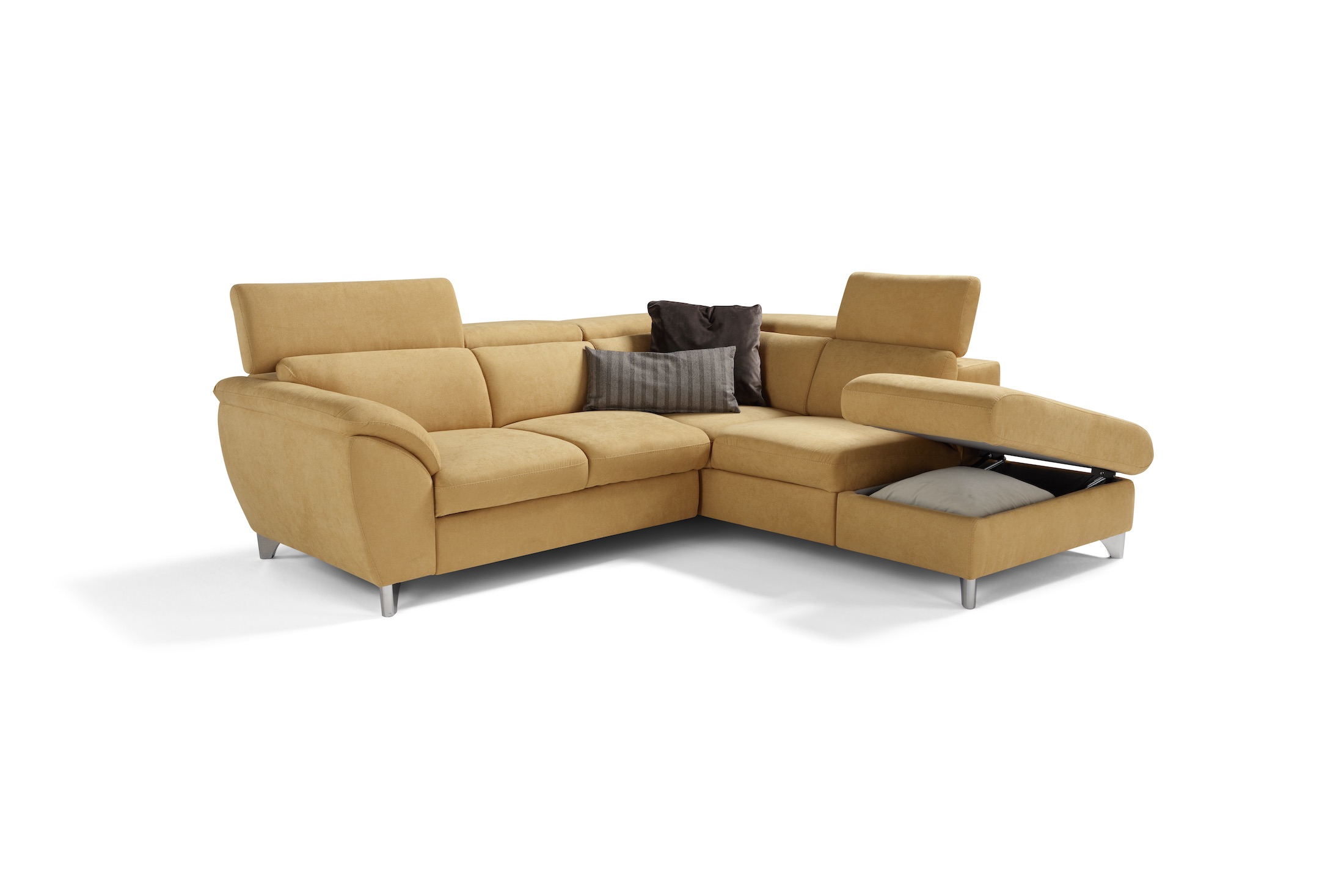Con le sue dimensioni contenute (solo 240 cm di larghezza), è dotato comunque di molteplici comfort, come un pratico piano di riposo con panca estraibile poggiapiedi, 5 poggiatesta recliner regolabili in 7 diverse posizioni ed un pouf contenitore collegato sul lato corto.
