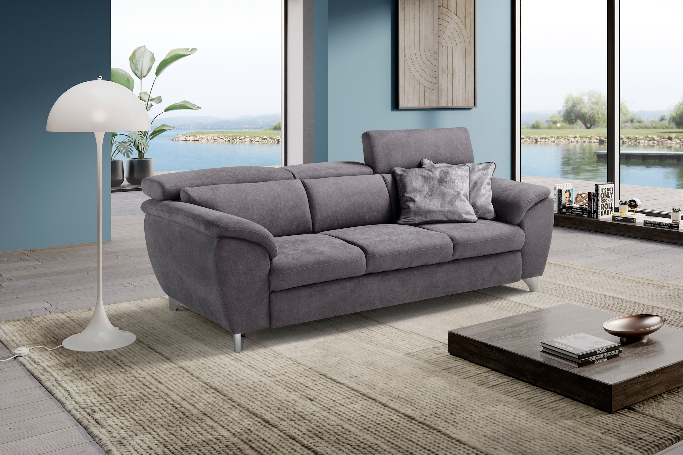 Un divano dal design contemporaneo impreziosito da 2 comodi braccioli imbottiti, che con le loro linee arrotondate vi consentiranno di arredare con estrema eleganza i vostri saloni.