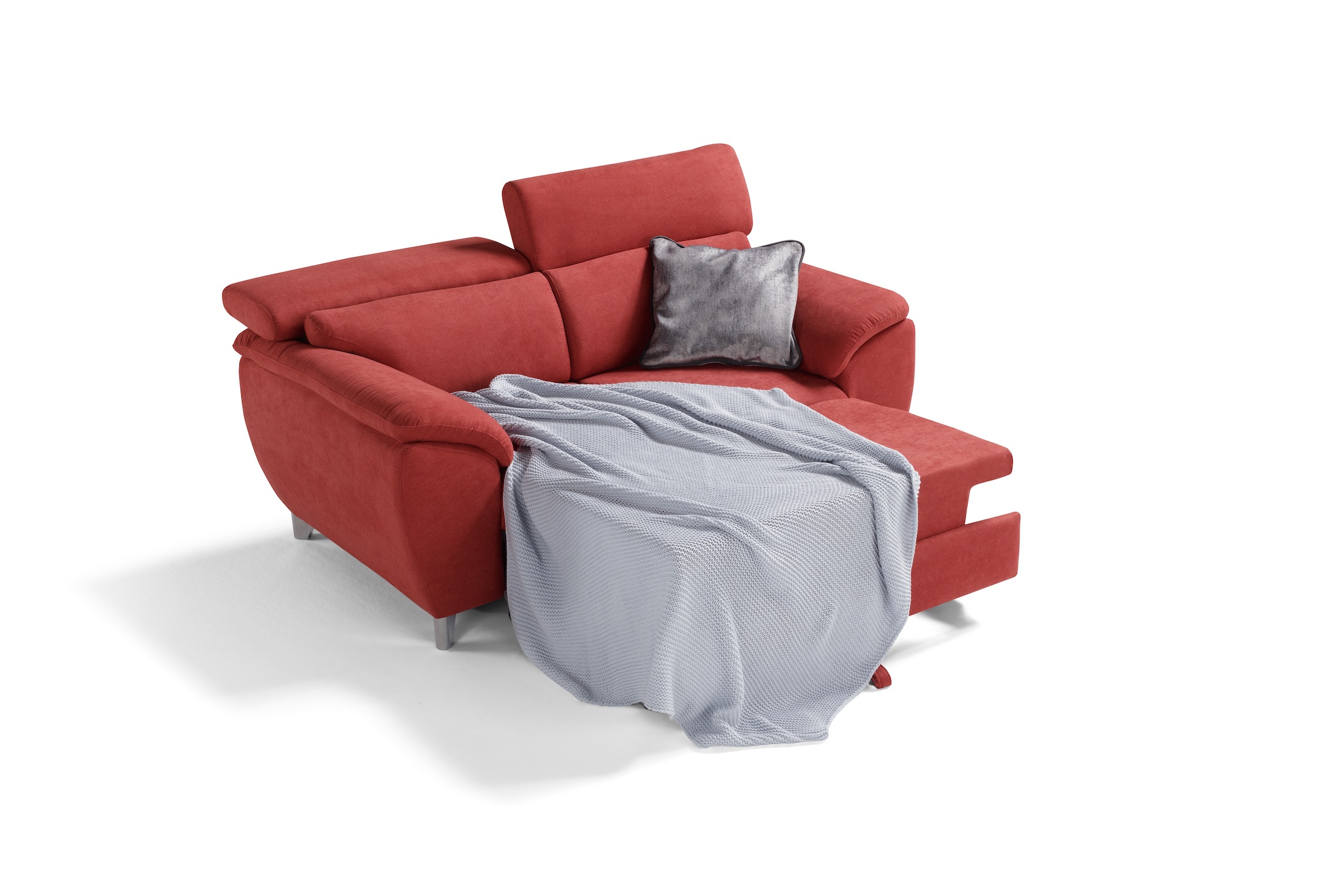 Nelle sue piccole misure (165 cm) è dotato di molteplici comfort, come un pratico piano di riposo con panca estraibile poggiapiedi e 2 poggiatesta recliner regolabili in 7 diverse posizioni
