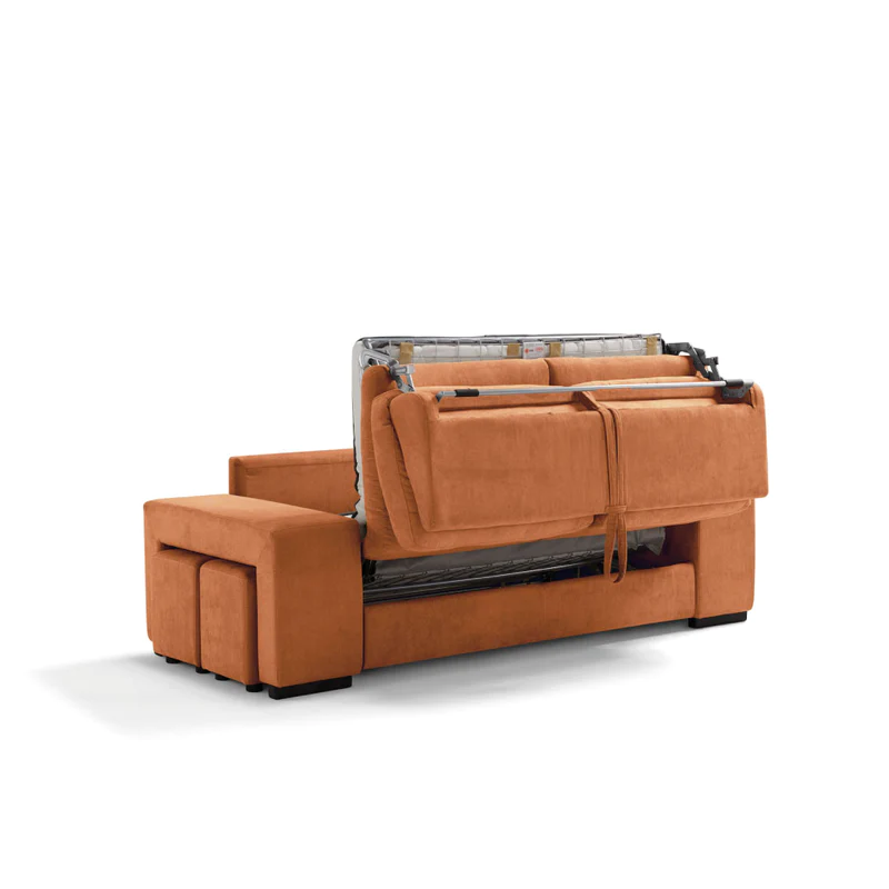 Ideale per qualsiasi tipo di ambiente, questo divano, si trasforma facilmente in un vero e comodo letto con un unico movimento, senza la necessita' di rimuovere i cuscini della seduta