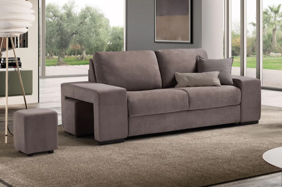 Caratterizzato da linee moderne con 4 comodi pouf (2 per bracciolo)
