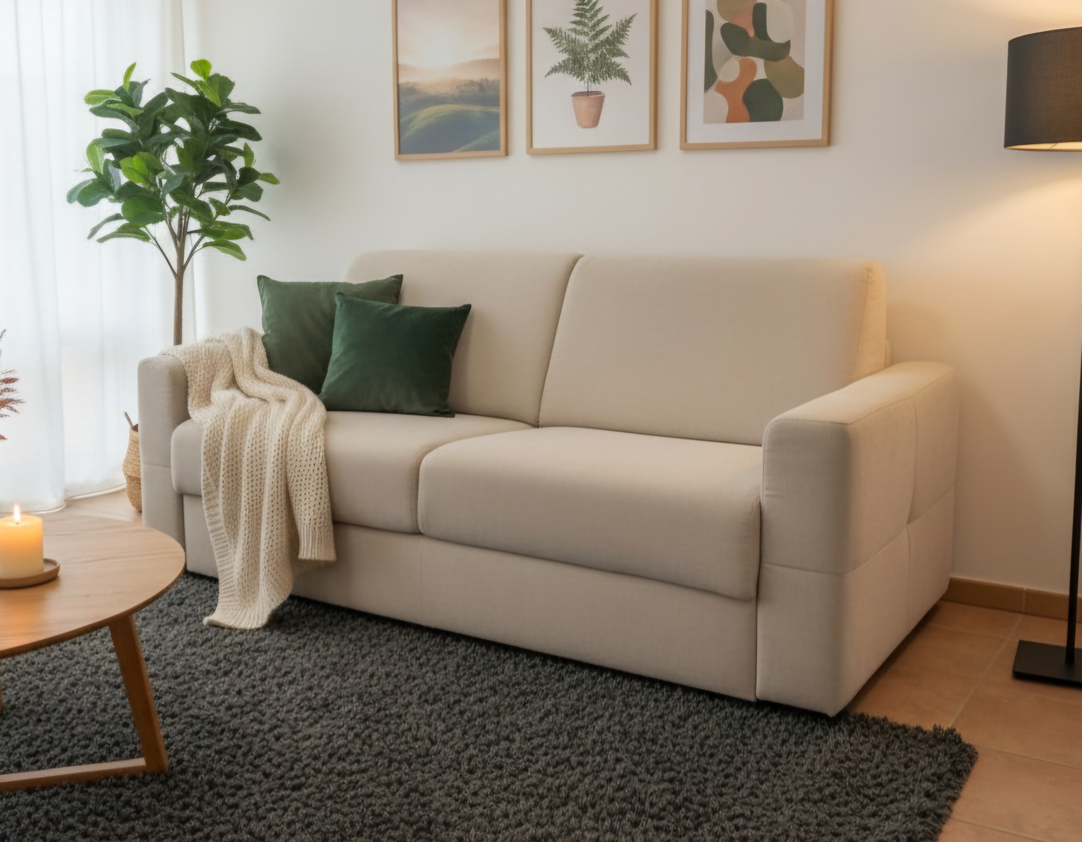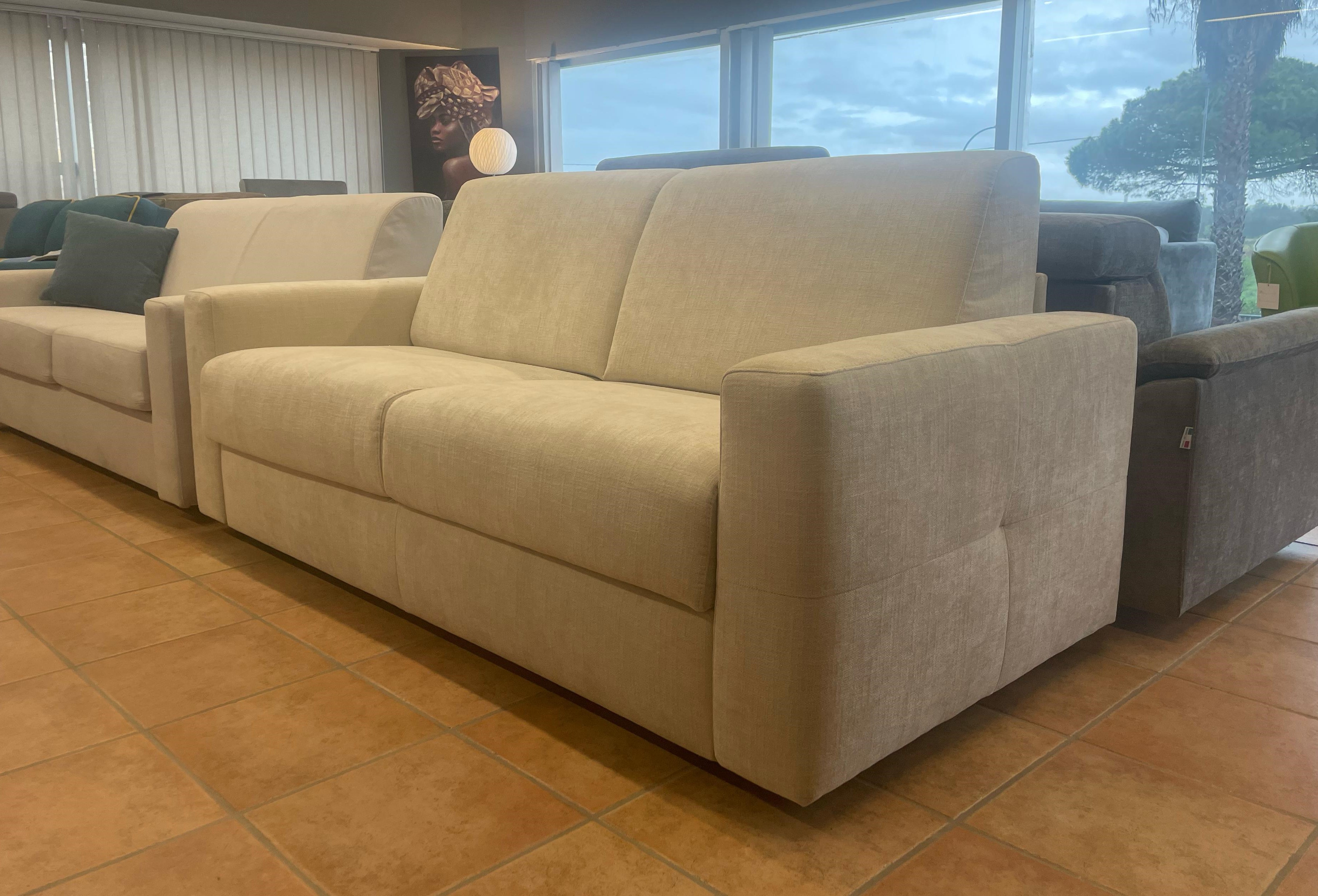 Ideale per qualsiasi tipo di ambiente, questo divano, si trasforma facilmente in un vero e comodo letto con un unico movimento, senza la necessita' di rimuovere i cuscini della seduta.